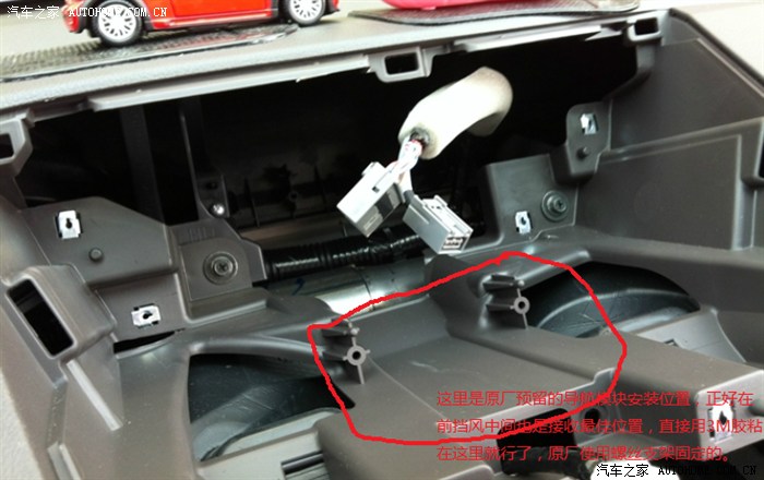 发现好多坛友都是把加装导航的模块安装在A住里面,那里面有气囊式非常危险的,有的粘在仪表台上实在太难看了!原车其实预留了安装的模块的地方,如下图!