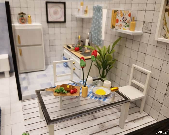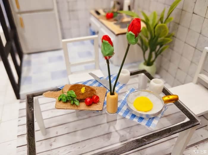 最喜欢的角落!!厨房!!!透明的餐桌,牛排,煎蛋,我都流口水了