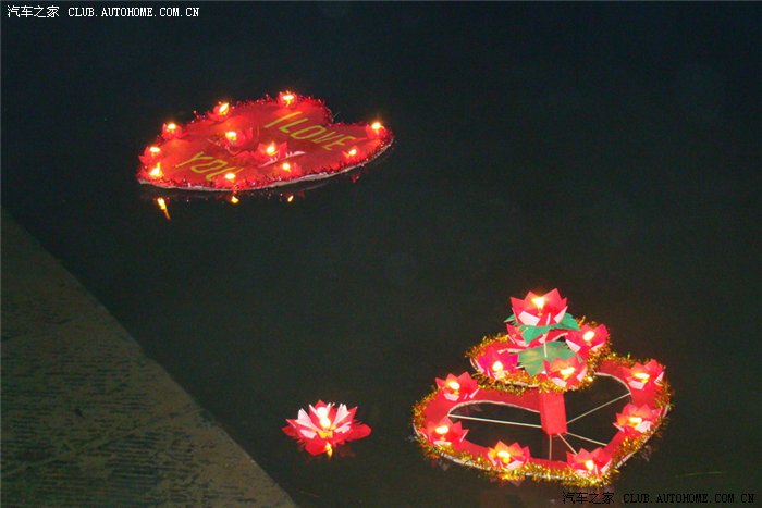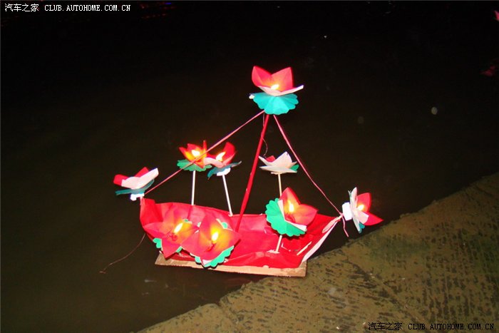 河上漂着各式各样的河灯!