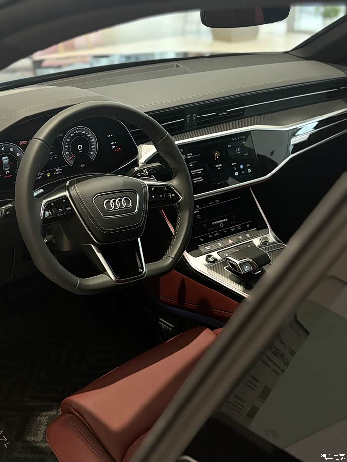 包括网上说车屁股不协调,我觉得整体都很帅诶,实车真的没话说,空间也很大,比A6大,还有一处我特别喜欢、就是它的轮毂全面增加了红色卡钳,只能说A7的设计师很懂拿捏年轻人的心。我有个开A6L55顶配的朋友,前两天刚在武汉去提了黑武士,我也看了一下确实要比A6L帅些,他原来那个车其实也才开两年左右,所以还是得拿捏一下男人的心设计师们
