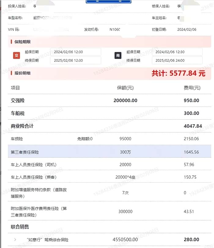 平安“如意行”驾乘综合保险,首保共计5600不到 ,其中强制险保额20W,车损险9.5W,第三者责任保险300W,驾乘险2W×5,附加增值服务特约条款(道路救援服务)7次!附加医保外医疗费用责任险(第三者责任保险)30W,正是有了平安“如意行”无形的一路相伴,才能有称心如意、安全无忧的自驾出行!感恩平安,也祝大家在出行途中一路平安!
