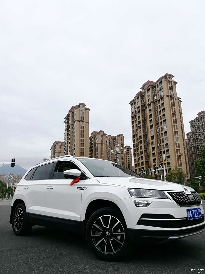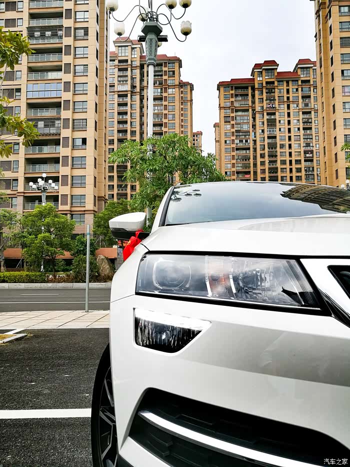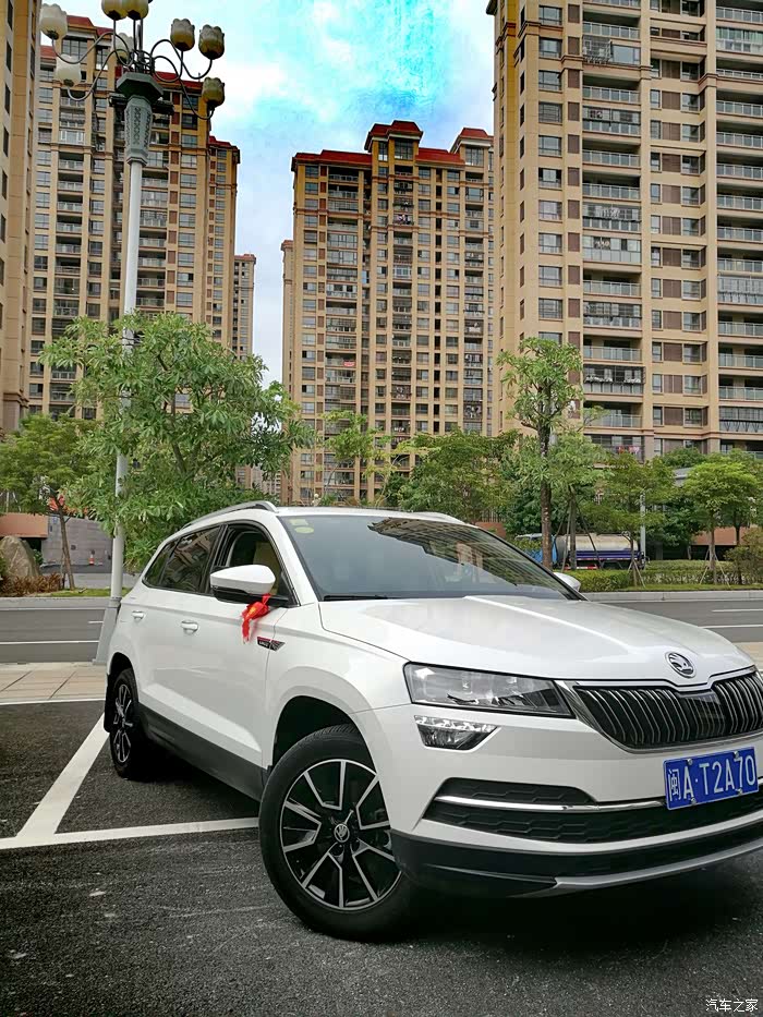 (二 定车系列)次日,到了4S店,小哥很热情的带我试驾了一下柯珞克。我发现柯珞克的转向是真的轻,转向很舒服,少虚位。驾驶感觉很不错。爸妈坐在后排也觉得空间很大,全景天窗采光面积非常大~老妈还在后面用USB充了会儿电。接下来坐下谈细节,当时看了一下配置,豪华版有全景天窗,疲劳驾驶,ACC,座椅加热,后视镜加热等等,在安全和内外配置上有不错的性价比。当时十月二号,车身16.99优惠到15.5。在我们的砍价下最终车身15w拿下。再加上七七八八的,落地17.2w-全款,