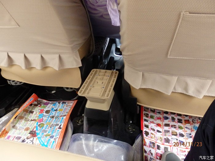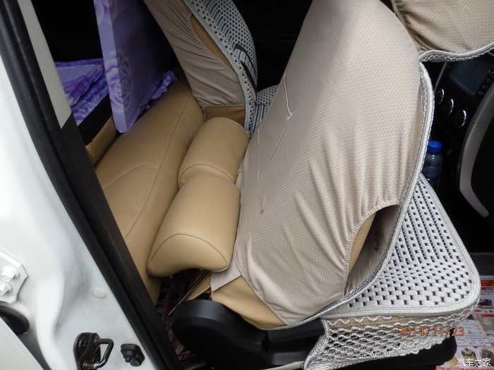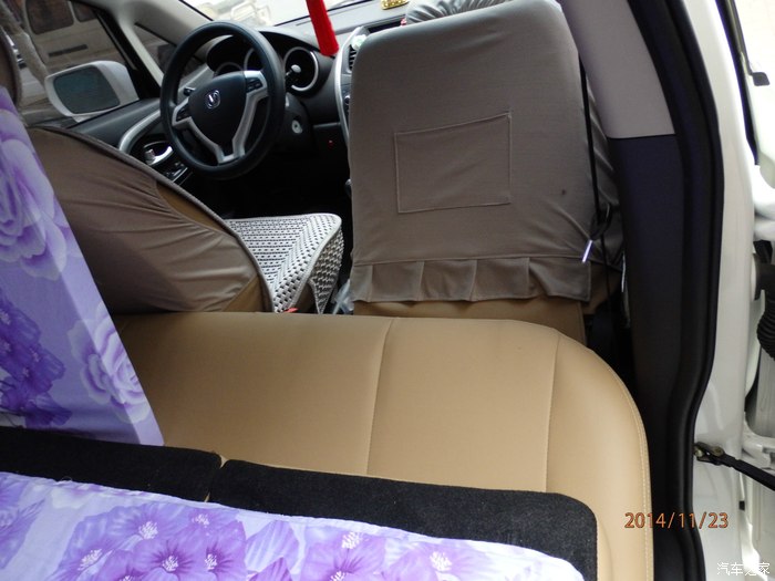 副驾驶后面的垫子比正驾驶后面的要宽一些,为的是一个人躺着时尽量宽敞些。正驾驶后面没放垫子时是这样: