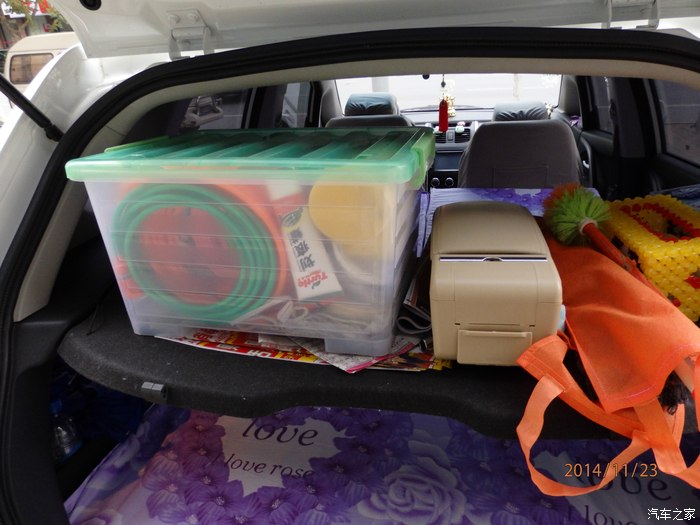 靠背放平了。后备箱比后排座椅低,把边角料放在后备箱垫子下面,就是这样。