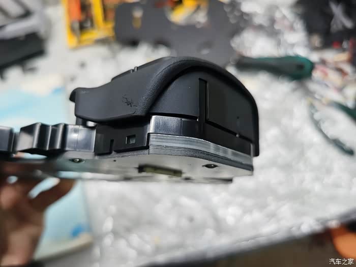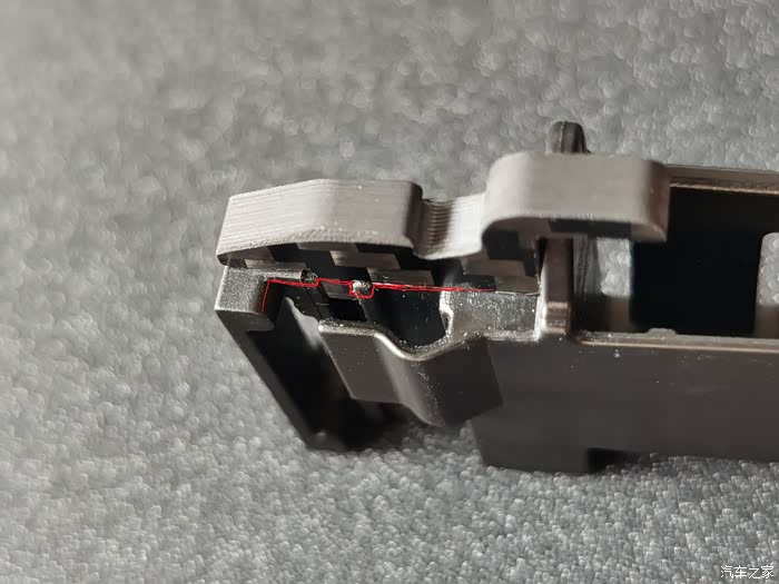 还有,原车滑块靠近滑轨里面和上面都有弧形凸起。需要特别说明的是,原车滑块用的是POM(聚甲醛)塑料,这个塑料本身有自润滑的特性,并不需要涂抹太多的润滑油在导轨上,固态的润滑油太多反而容易粘附灰尘,部分灰尘里含有的二氧化硅(其实就是砂子)颗粒会导致滑轨磨损和阻力增大,所以极其不建议添加过量的润滑油!