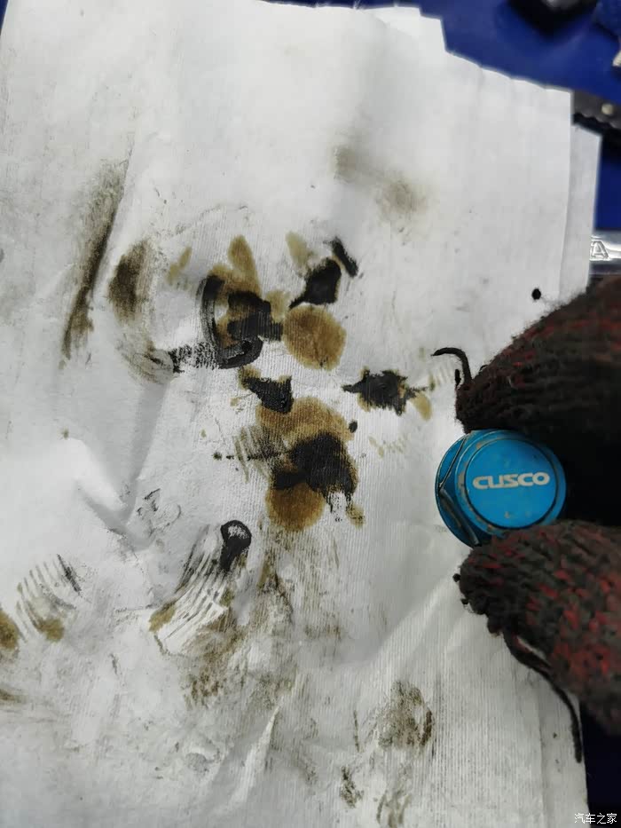 没有细拍,只是在清理放油螺丝的时候拍了一张,黑色的是含有铁屑的碳颗粒。