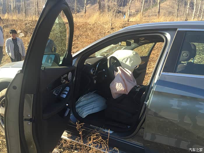 奔驰GLC撞树,爆了3个安全气囊,维修费用16W