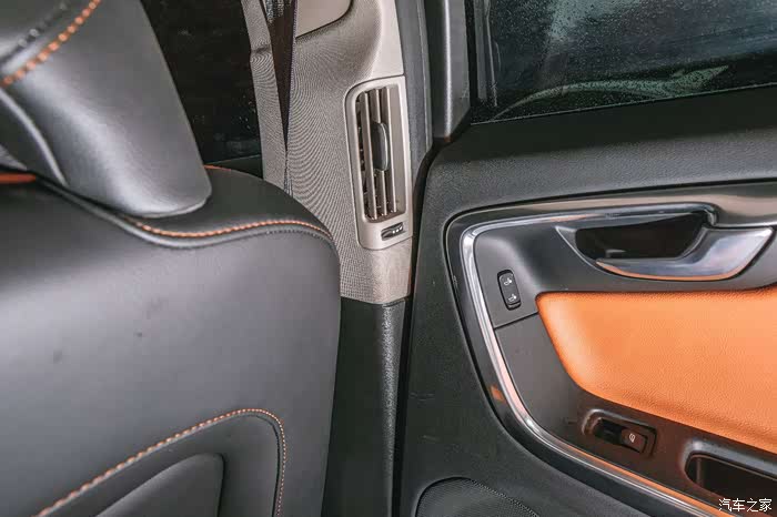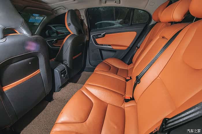 沃尔沃的座椅还是蛮舒服的,真皮座椅,第二排中间有头枕,好评一个,虽然说不起眼但是长途驾驶对中间乘客很关键。