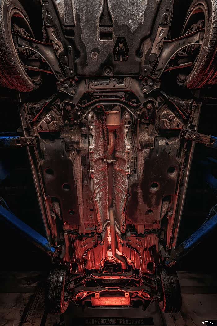 尽管是老底盘,但是S60L的底盘平整度还是相当不错的,并且底盘配有玻璃纤维护板,防护比较到位。尽管只有一部分管线外露,但是无伤大雅。