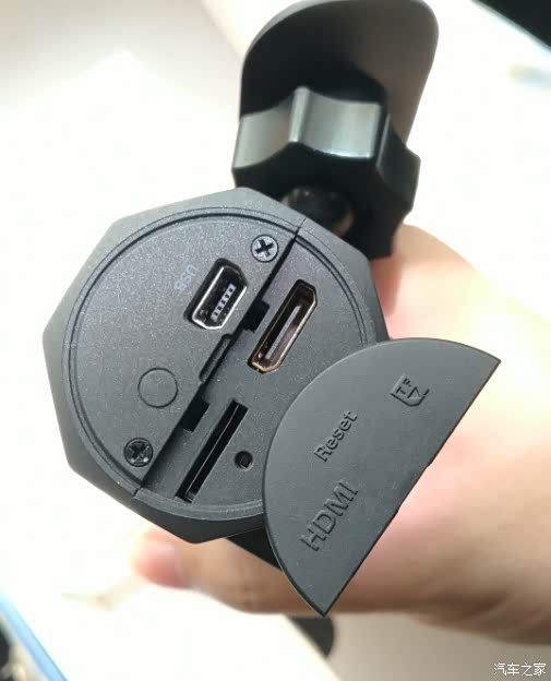 忘了一个重要的步骤,得插入内存卡,插内存卡的卡槽隐藏在行车记录仪的USB接口这边,在MiniHDMI旁边。这里要小小的吐槽一下,害我摸索了老半天才找到这个卡槽,SD卡都差点掉了。不过把卡隐藏在里面,确实更加好看和实用。