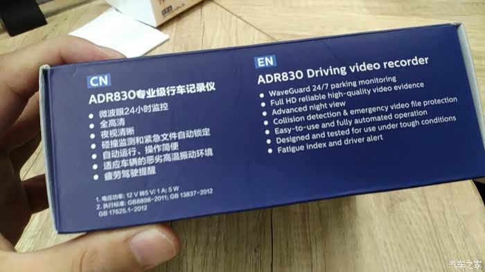 侧面写着微波眼24小时监控、全高清、夜视清晰、自动运行、操作简便、适应车辆的恶劣高温振动环境、疲劳驾驶提醒等等,同样也都有中英文对照,对于我这种英文方面不大擅长的算是很贴心了。