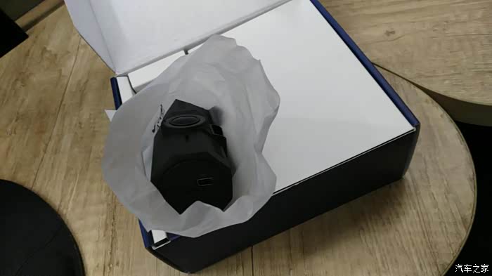 打开盒子,里面分为了两格,行车记录仪的主体用一个标有07CPE的半透明袋子包裹着。