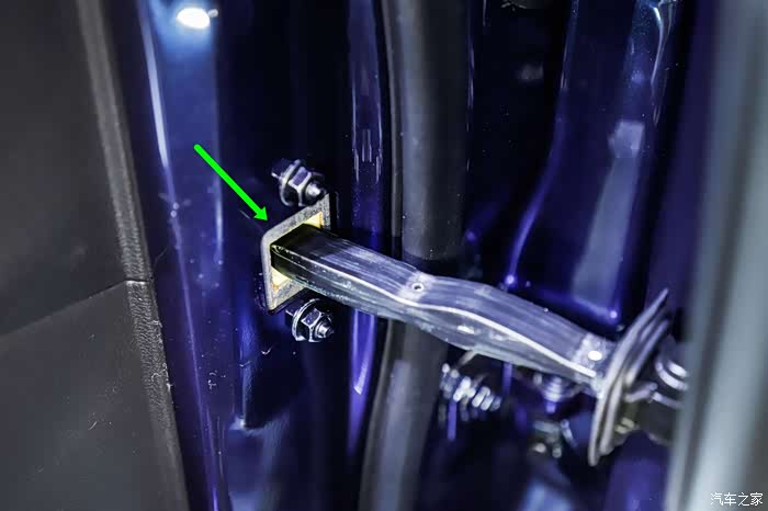 车门限位器有个细节,平时我们关闭后,上方这个方孔没有密封就会有灰尘进去。而全新一代瑞虎8的限位杆上多了一个密封盖。