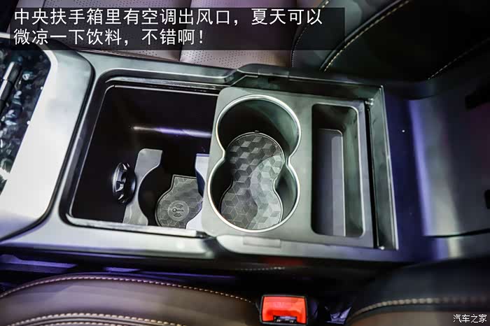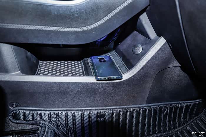 车子带有无限充电功能,我也在跟厂家工作人员探讨过这个位置设计这么一块无线充电是否合理(比如可以放在下面悬空的储物台),不过他们的答复打消了我的疑虑。谁不用手机?上车肯定找地方放,这里平放是最好的。即使不是无线充电,放手机拿取也方便。不过这个绒皮垫后期打理程度可能困难些,如果是软胶的可能会好点,耐脏易打理。