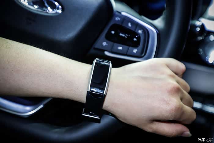 展台接待解说小妹的智能钥匙手环成功吸引了我的注意。她说这个是随车配送的,上面有显示屏,集成了开车门、远程控制、运动健康等等很多功能。因为戴在人家姑娘手上,叫兽不好意思对着人家小姑娘手臂盘着了解