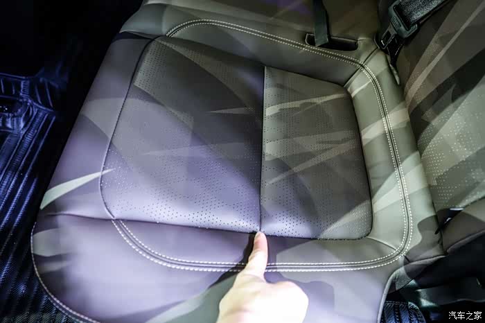 有个乘坐细节,可能跟个体身材关系比较大。我觉得这个第二排座椅,如果这根缝线能往前移动8厘米左右,那么乘坐人员的屁股承托包裹性会更好一些。