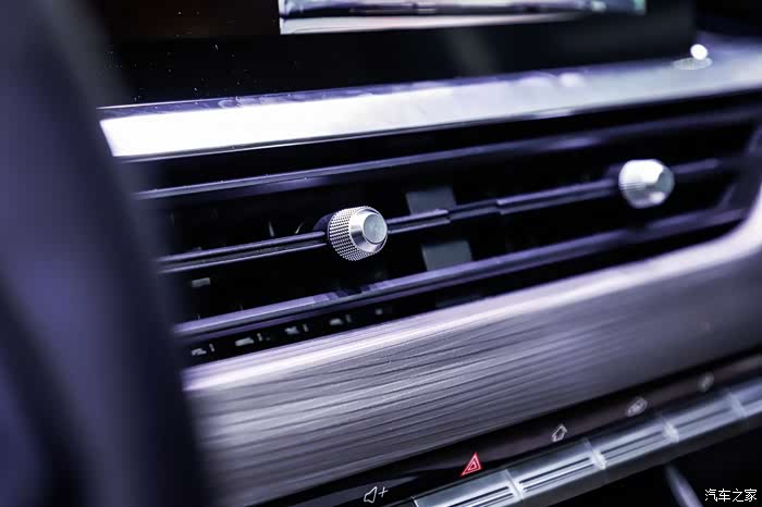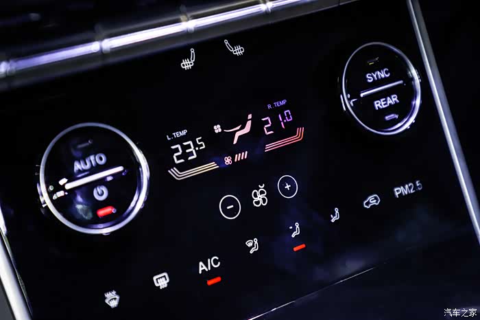 空调控制区也采用了一块触摸显示屏,从显示效果来说字体再稍微亮一点,那效果就更完美了。使用效果便利性不谈,三块屏幕组合在中控台,看起来科技感也是很棒的。