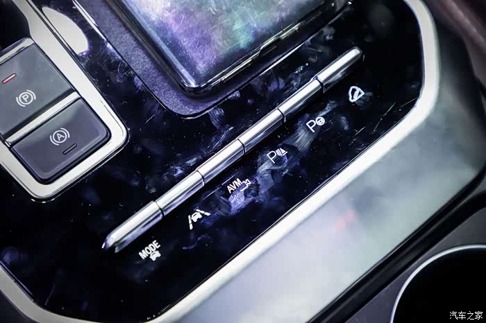 拍的这台应该是以后的顶配车型,这一排按键功能都占满了。除了常规车道保持,陡坡缓降等功能外,倒数第二个自动泊车键是我最关心的。假如后期不配有,提供选装也不错,毕竟车子还是比较大的。