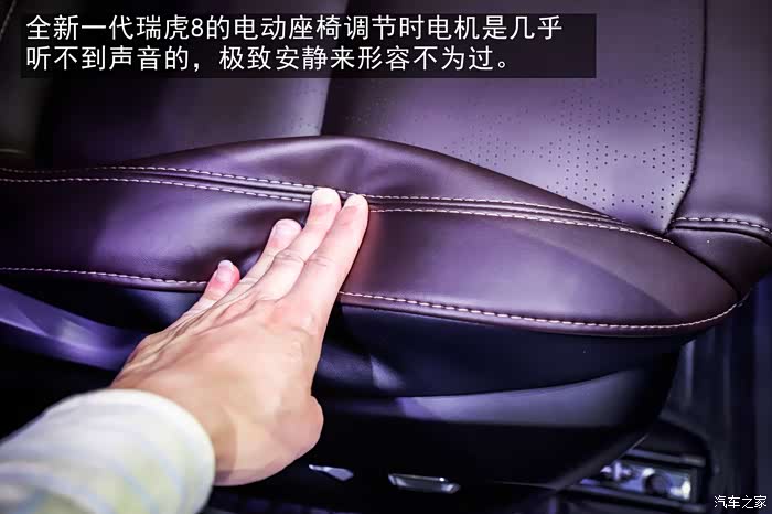 有一点我必须要重点强调的,全新一代瑞虎8的内饰新车气味真的非常轻微,而且没有什么异味。如果说新车内饰气味控制水平,我敢说好于很多合资车。我觉得很大功劳正如展台工作人员说的,新车因为采用了李尔的座椅,皮质味道没那么冲。