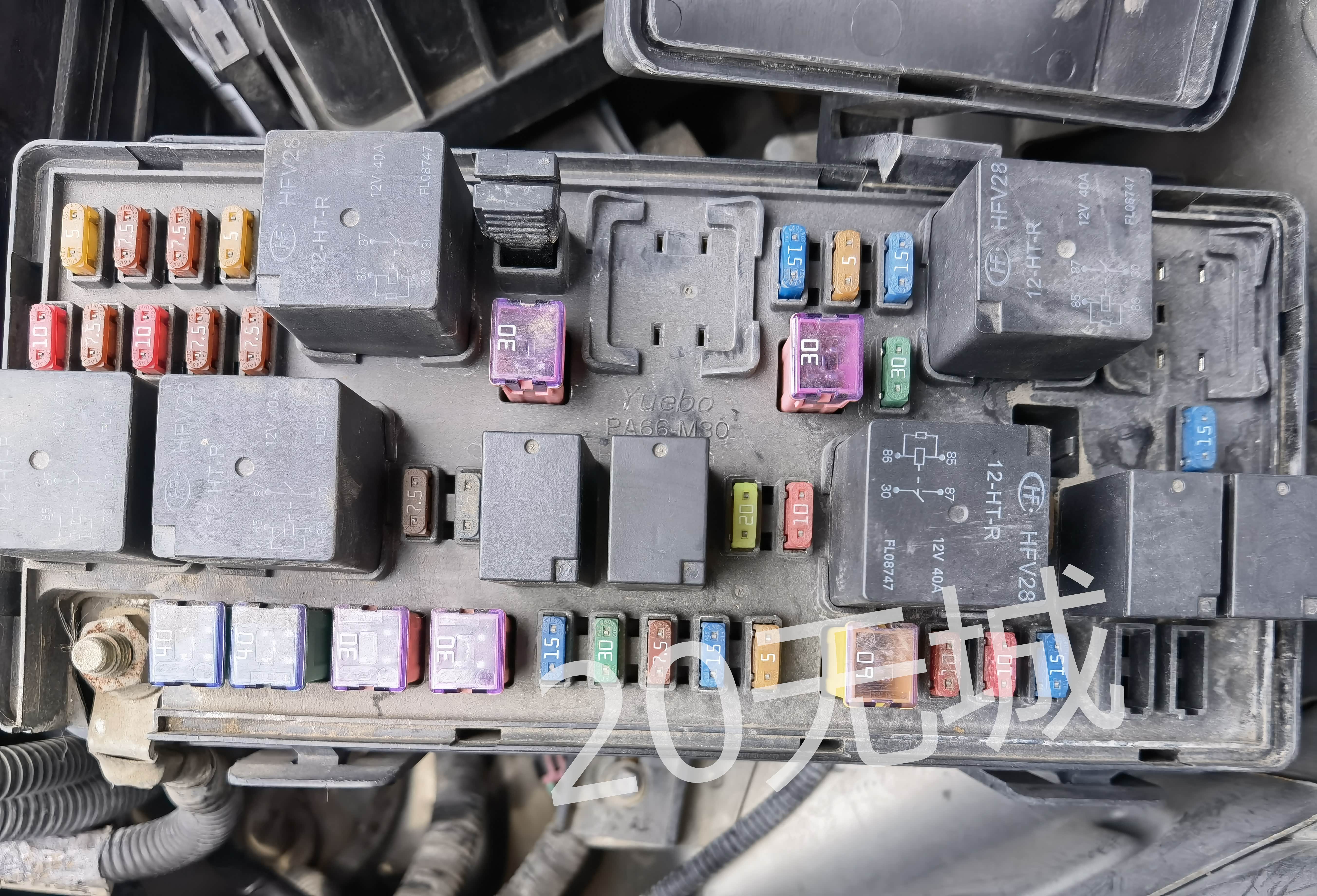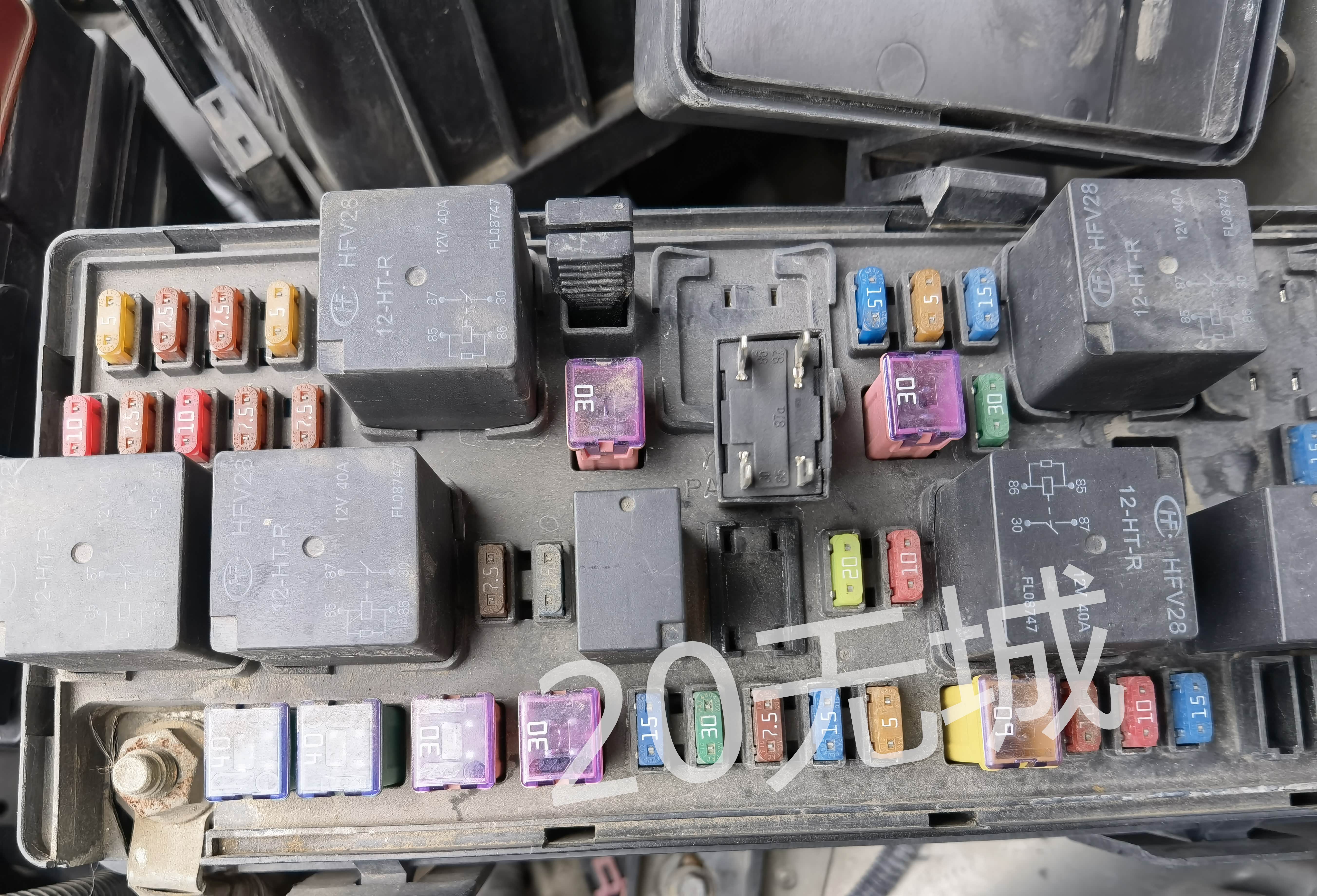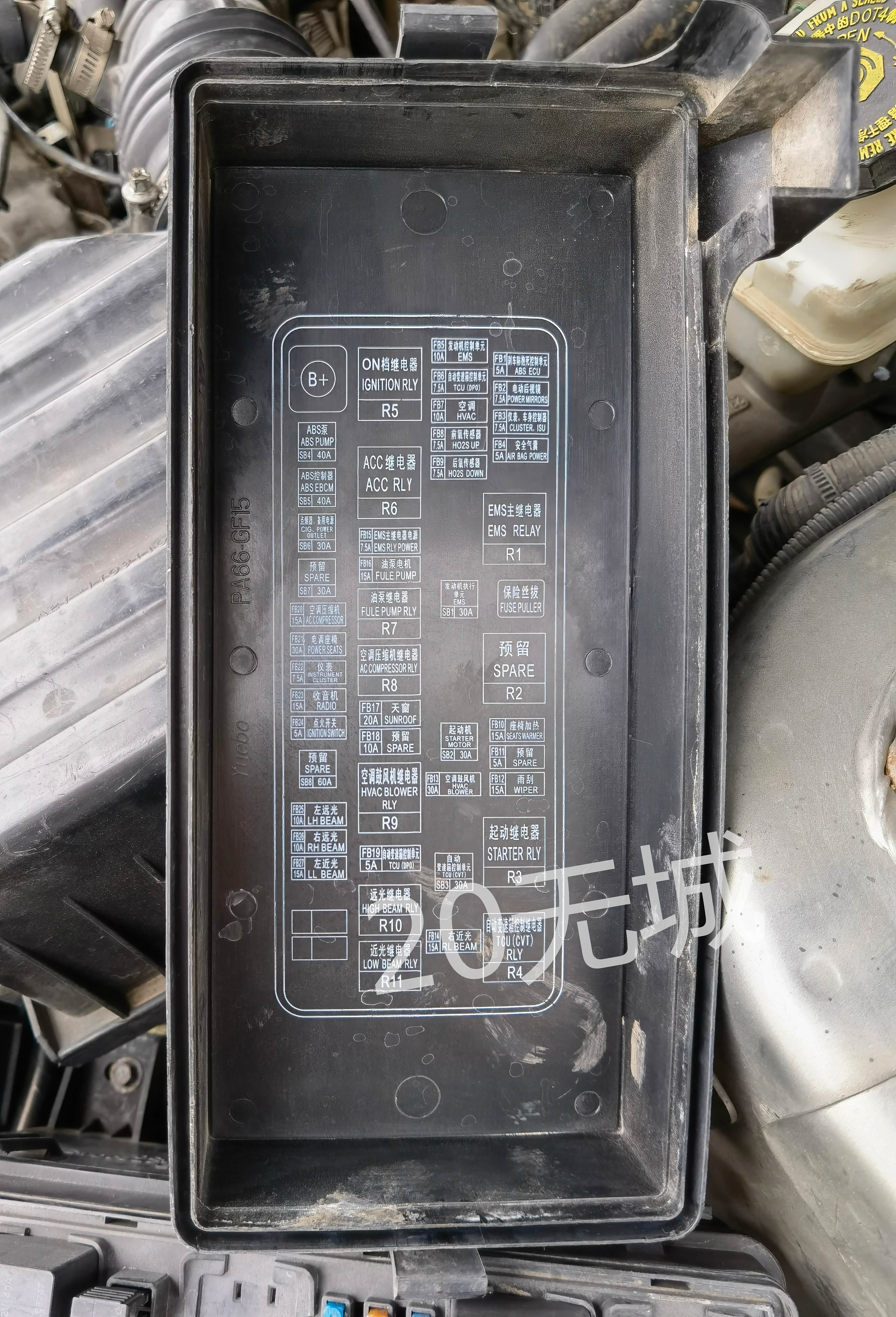 前舱正极保险盒盖子,可以看到保险和部分继电器的定义