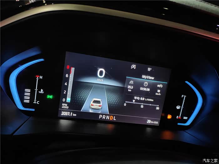 仪表盘精致,好看。现在开了2037公里,表显油耗6.9L/100km,不知道这个油耗如何,大家说说看你们的油耗在多少呢?
