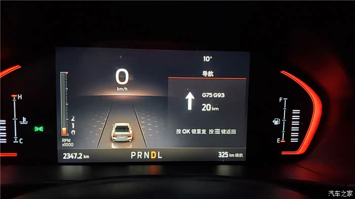 快到家之前看了一眼,2347公里,油量还剩很多,续航325公里。