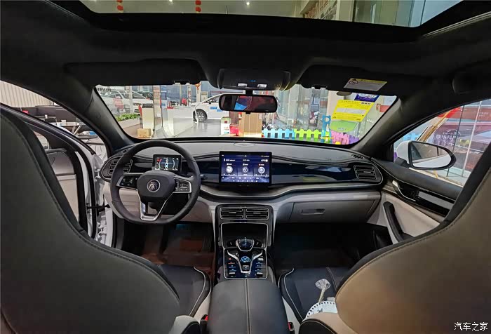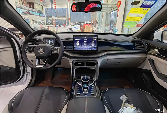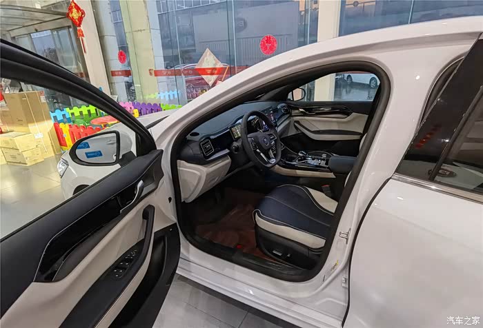 内饰不是,是富有科技感的蓝白搭配,即素雅,又不失科技感。