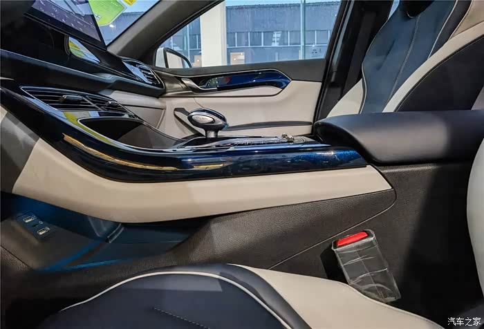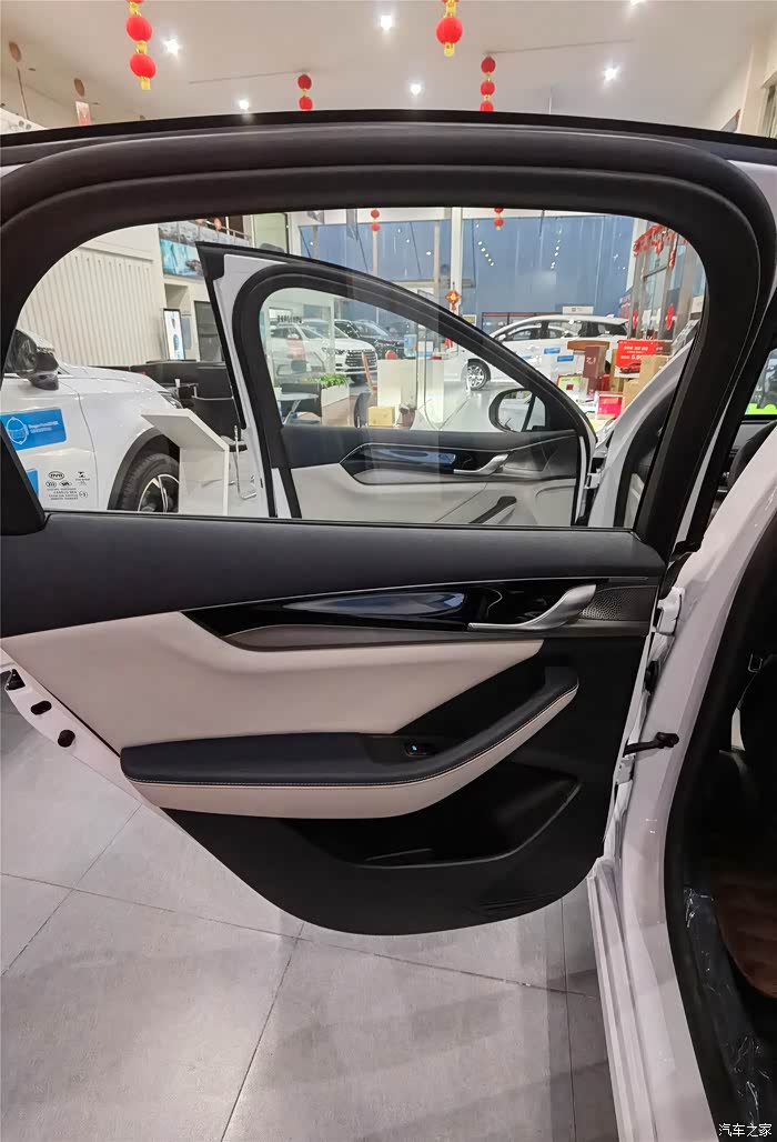 车门部分,依然是分段式多种材料相结合的设计,搪塑,真皮,钢琴烤漆件,最重要的开门拉手是带收出色阻尼设计的,这一点是从汉上面学习过来的,非常棒额细节。