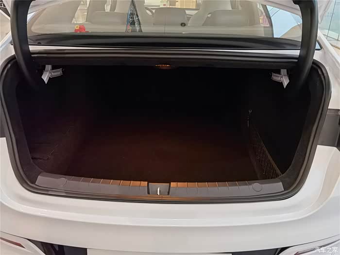 由于采用了电池组底部中置,为后备箱带来了绝对的空间提升,这一点为设计师点赞,在后面还细心的设计了小网兜。