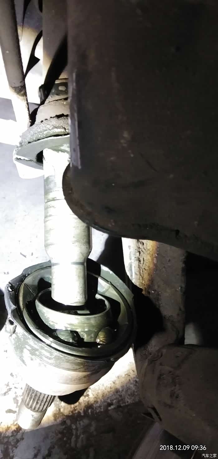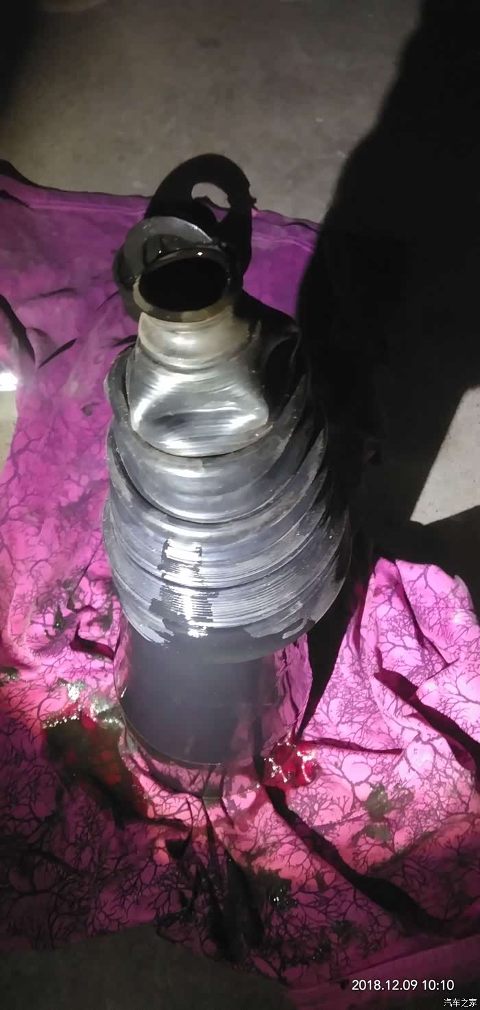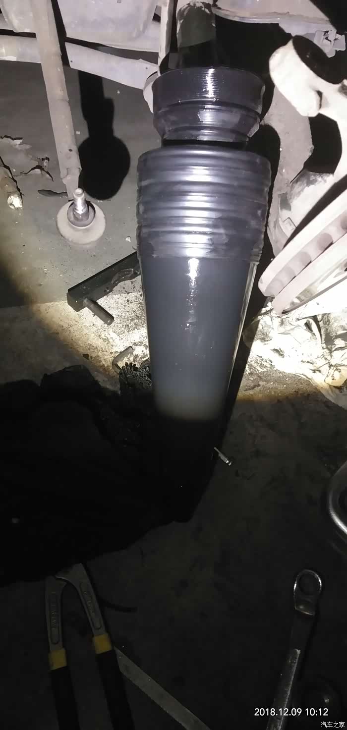 今天周日,准备大战球笼套 ,狮子将近8年了,两边的外球笼套终于坏了,根据判断,打方向无障碍,无异响,应该球笼没问题,只是防尘套扯了,如果长时间不换,里面的油甩干了,或进去沙粒尘土,球笼就会很快坏掉,因为他就是一个万向轴承,今天虽然冷些,考虑到还是去地下停车场暖和一些,只是光线不好,说干就干。说下要点1,更换套子或者球笼,齿轮箱油会从半轴那流出一部分,所以最好要把齿轮箱油放掉,如果长时间没换了,放完顺便就换新油吧,如果时间不长就收集起来再加进去,2,减震器那两条螺丝不好上,注意恢复时别把新的球笼套捻坏。3工具准备:一磅的手锤,16-18梅花,10mm和18mm加长套筒,16mm套筒,36mm套筒及加力杆(800mm长的1吋铁管做加长套管)刻丝钳,卡环钳,手锯,棉丝,顶稿,车载的也行,但最好不要到车底操作,用抽油泵,换机油用的,网上有,几十块钱,好了,大家随我来,咱们开始