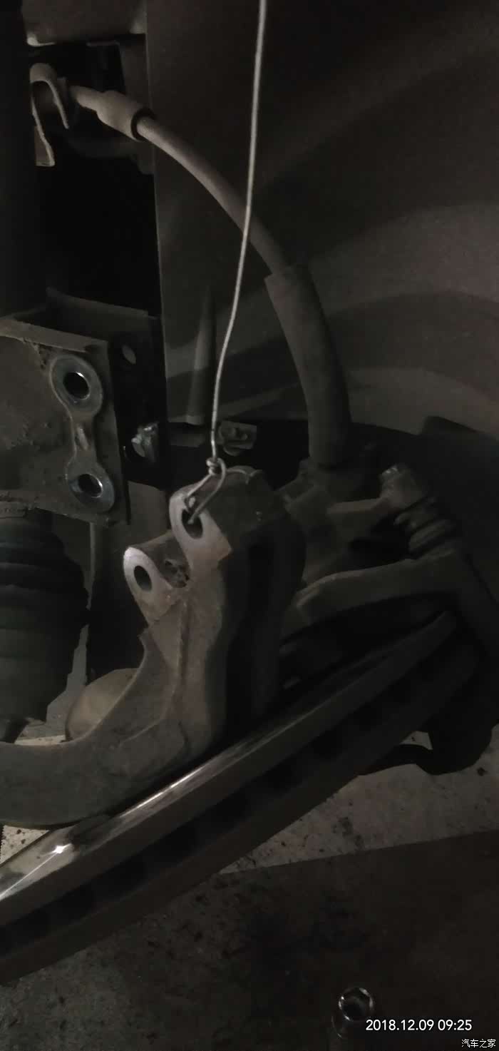 怕刹车盘下坠弄坏刹车管,用铁丝拴上了,后来看,其实一点都不用担心根本掉不下来