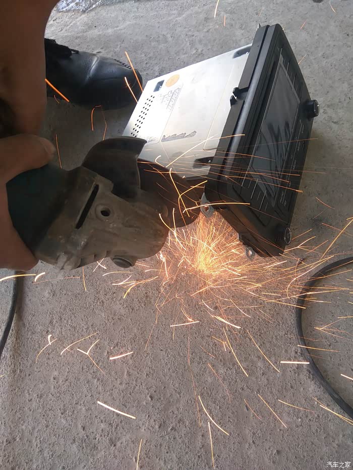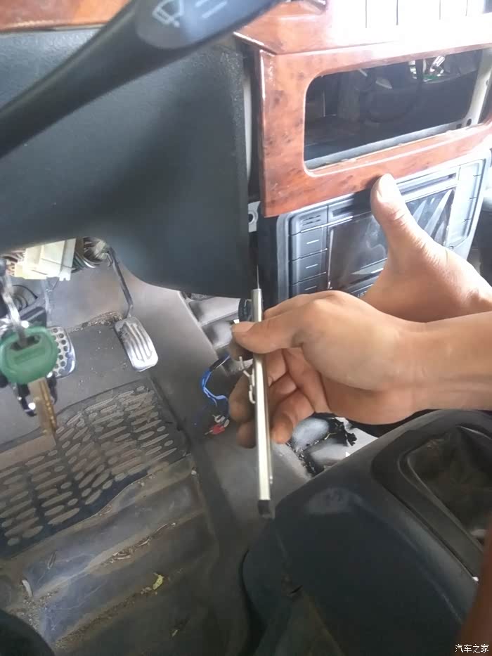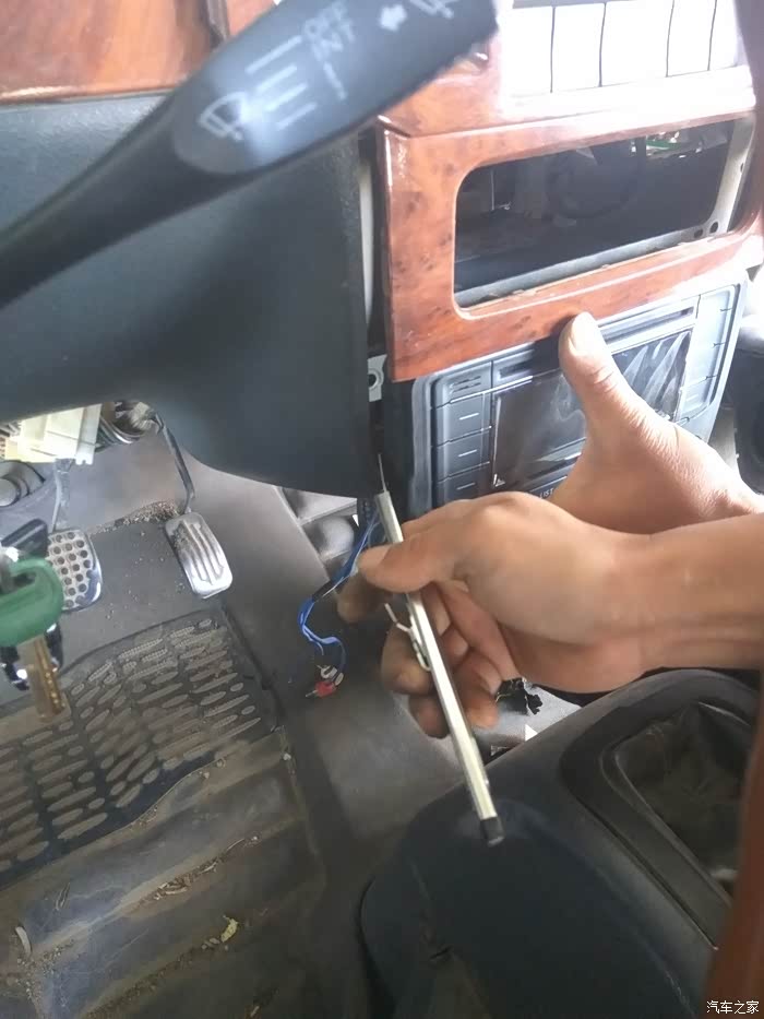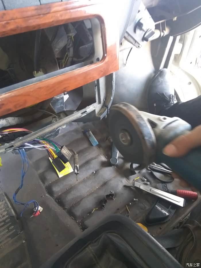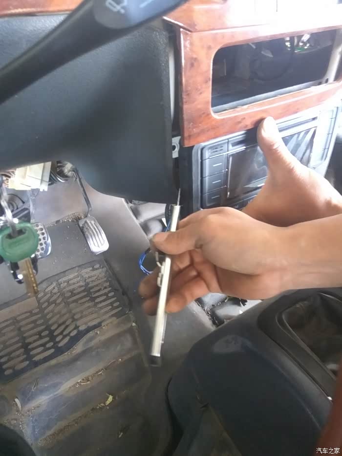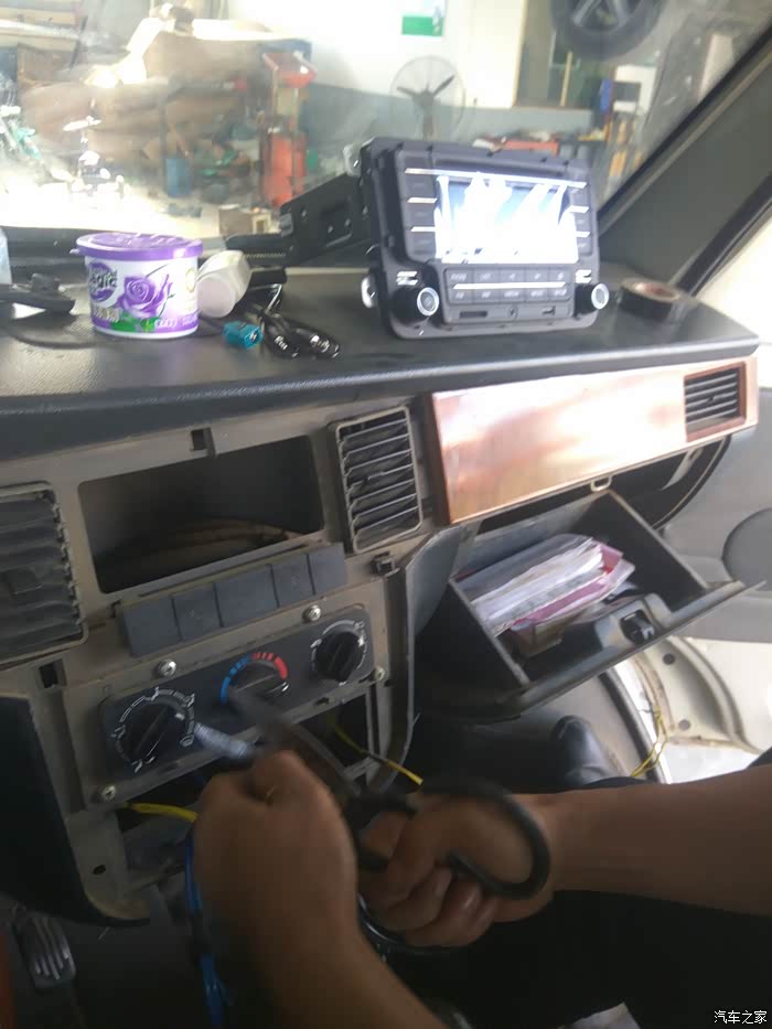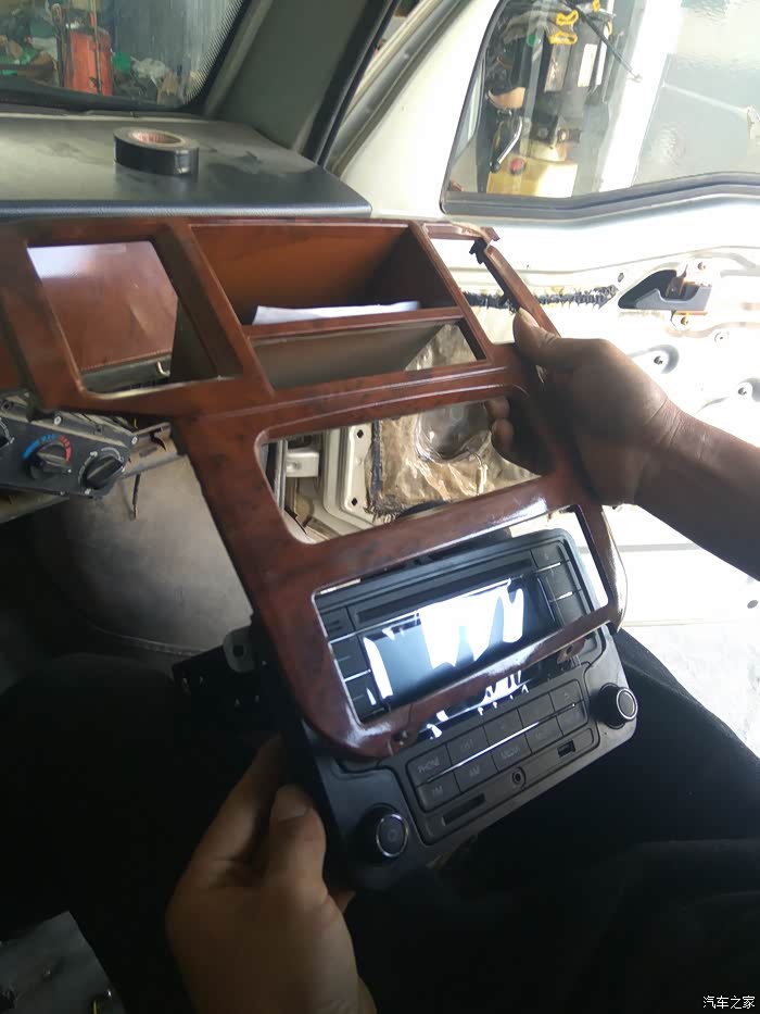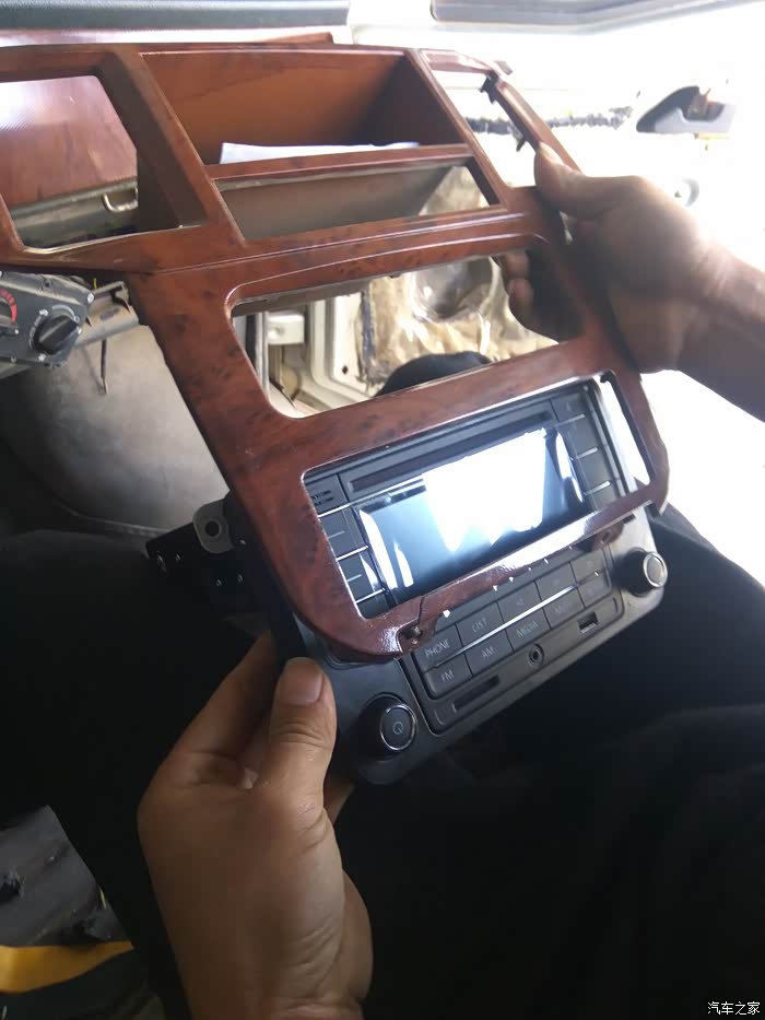 比了一下子原车收音机位,本来想学别人把空调控制板放到手套箱下面,结果不行。
