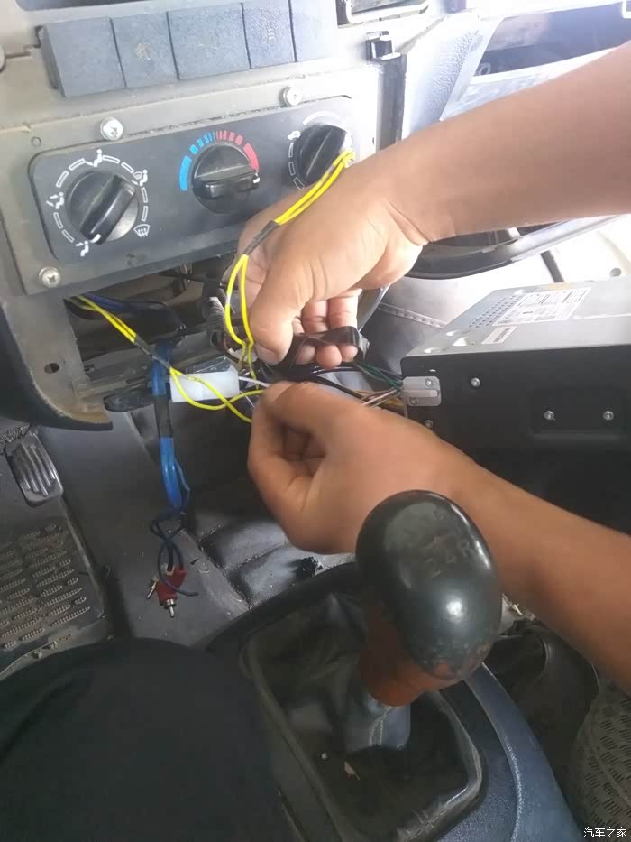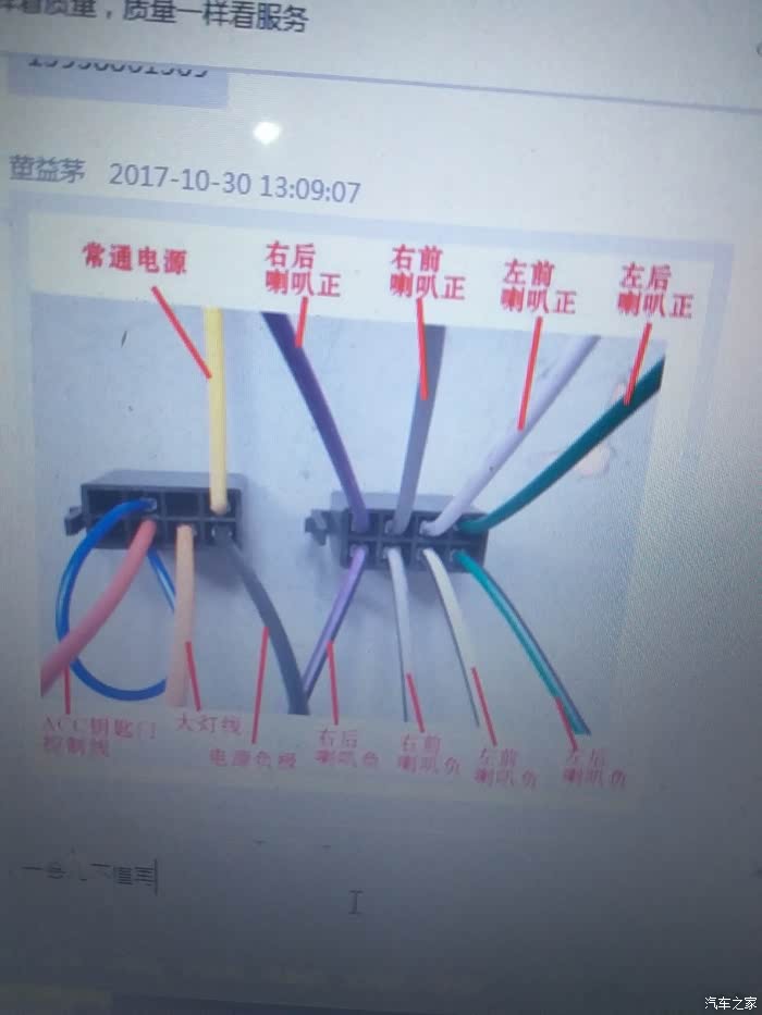接线,这里只接了ACC,正极,负极,还有一根接大灯的当时没接,过几天等喇叭到了再把接大灯的线接上。