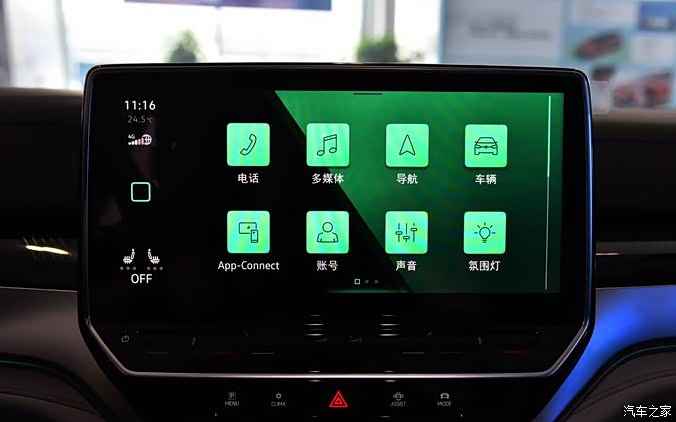 走进车内我们可以看到大众熟悉的内饰风格,但是作为纯电动车型,内饰设计上更胜一筹,12英寸中央触控屏,30色可调内饰格调氛围灯