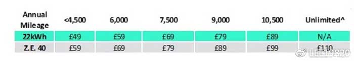 大家可以看到,这里有两种电池规格,一种22KWH,一种40KWH,但是40KWH的价格并没有比22KWH贵一倍左右,只有贵10欧元一个月,而租赁价格主要是由行驶里程决定的。因为行驶里程和能耗决定了电池损耗成本。