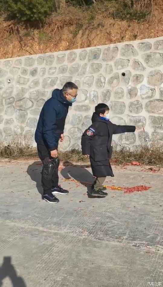 找了个不影响别人又合适地方,我们又带着孩子和狗子,在这里开始放爆竹啦。