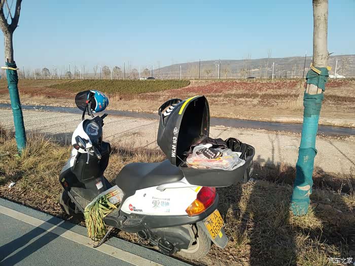 我们汇合后,顺着浐河西安一路向南前进,走的是浐河河堤路,这里交通便利,没多少汽车,沿途景色也不错。骑行到关中环线上就近找了个加油站,先给车子把油加满。小踏板目前已经跑了32400多公里了。