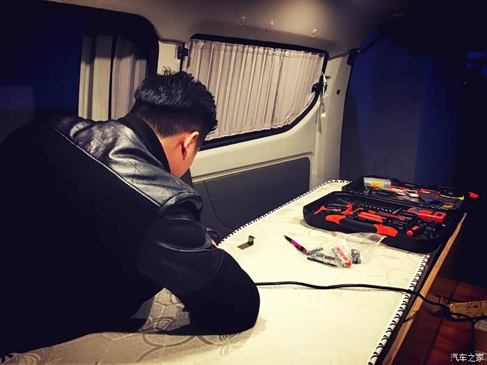 车顶开孔,走线,安装顶灯,灯光一定要足才有感觉!