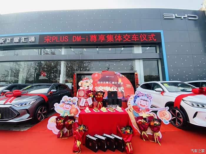 交车仪式现场,一整排比亚迪宋PLUS DM-i,整齐停放在门口,一眼望去格外壮观!而交车的那一刻,不仅带来喜提爱车的满足感,更饱含着对未来的无限期待,因此,交车的当下显得弥足珍贵。