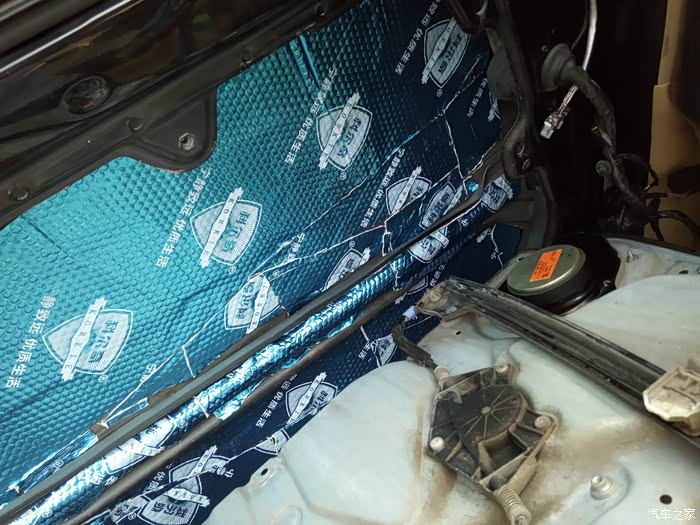 自己贴的止震板里外两层 还有隔音棉 清忽略我那惨不忍睹的黏贴手艺 第一次你懂得
