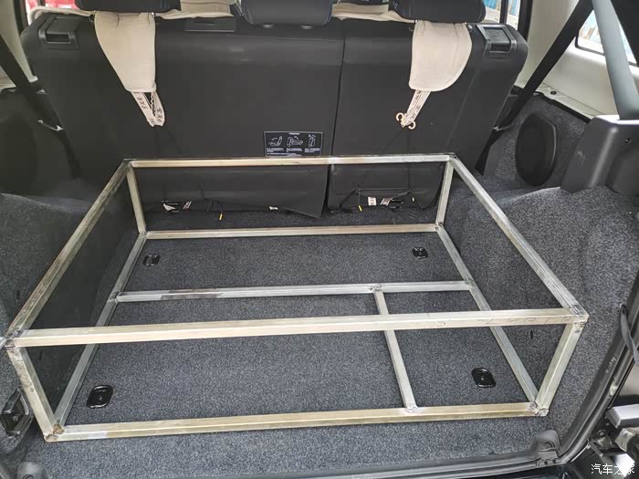 只做隔段,无需侧围,除了千斤顶位置用了块木板铺底,其他位置无底板,减轻重量,加装储存空间