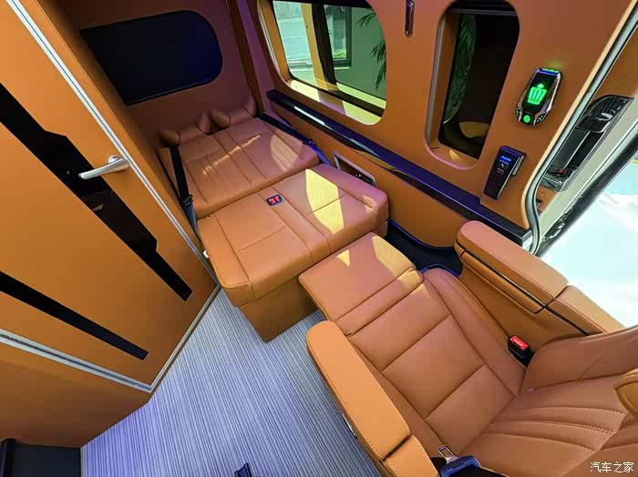 旅居区域则是这款车的核心亮点所在。车厢内部采用高品质的装饰材料,营造出温馨舒适的居住氛围。柔软的座椅、精致的内饰细节处理,无不彰显着对品质的追求。在座位布局方面,充分考虑了乘客的舒适性和空间利用效率,可灵活调整的座椅能够满足不同场景下的需求,无论是日常乘坐还是夜间休息,都能找到合适的模式。