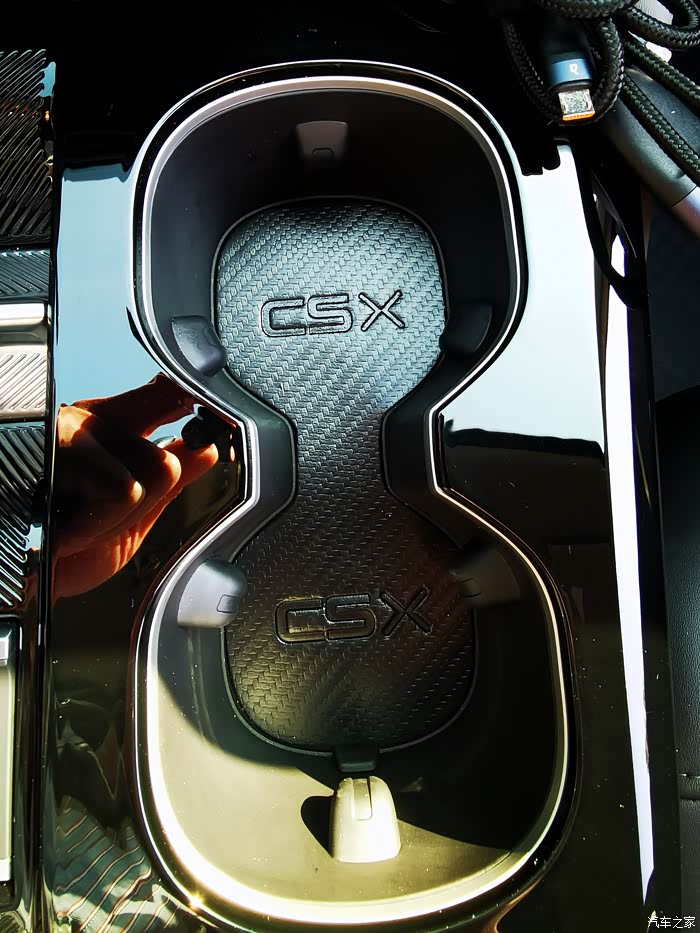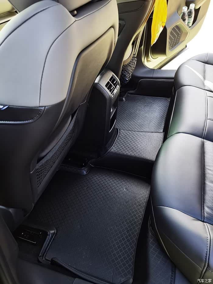 前排,扶手箱戴了套,里面放了置物盒