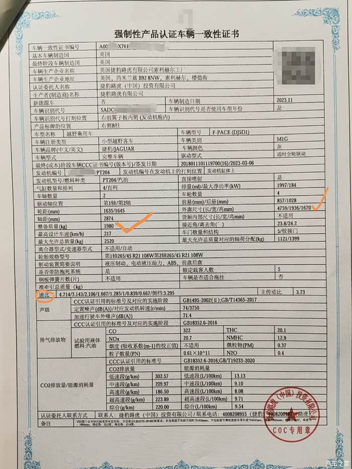 近期提车,发现3c认证证书上的变速箱速比数据,明显是8hp45的。之前多方面渠道都表明,24款已经换装了8hp51变速箱。不会是中规车还在用老款的变速箱吧