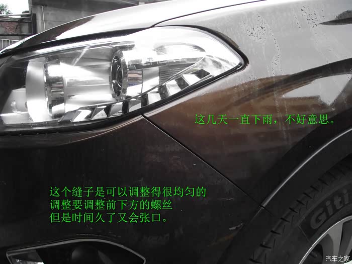 大家说的两侧叶子板的缝隙,其实真的不好整,我的调得严丝合缝,结果没过几天又这样了,调的时候就是保险杠下面的螺丝的调整,放得合适,缝隙就非常漂亮,时间久了又松了,保险杠是塑料件,要变形。当然肯定还有其他的方法。