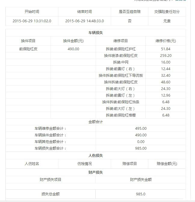 这个就是定损详单了。
