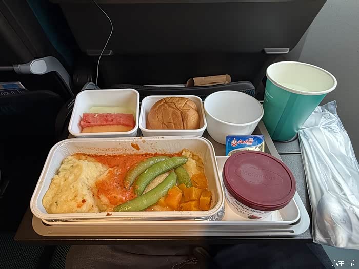 不得不说国泰航空的航班餐还挺好吃,水果 面包 鱼和土豆,外加哈根达斯冰淇淋!