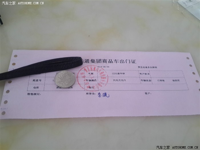 4月20价格出来之后我就知道,75就是我的第一辆车了,和最初的预算出入不大,5月2日是订车的日子,平时工作太忙没有时间去试驾,公司运动会举行地点离SSSS不是很远,然后自然而然的沾光了。。。5月29日早上8点接到消息,今天车来了,问我提不提,回答干脆利索一个字 提 穿衣起床立马踏上提车路。本来订的黑色,经不住群友白色诱惑,黑色换成了白色,谢谢强哥给力! 27天的等待迎来了,人生第一辆爱车 cs75