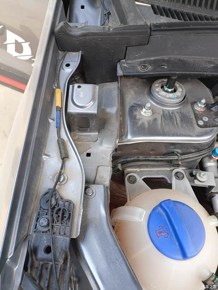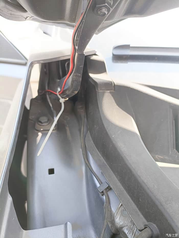 第一步是确定摄像头的安装位置。朋友在打开机舱下方的车身上仔细比划,这里既能较好地覆盖盲区,又不易受雨水和灰尘影响。位置确定后,便开始小心地钻孔走线,将摄像头固定在车身上,每一个动作都精准而谨慎,我的心也跟着悬起来,生怕对车造成损伤。确实不好走线,手都很难放进去,这是前置摄像头了,