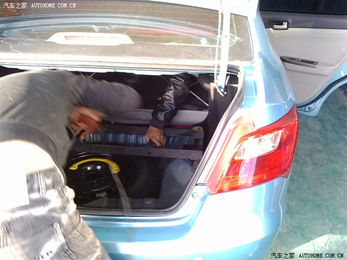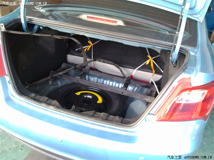 后备箱加罐的地方,装了个80的,冒是有点大。
